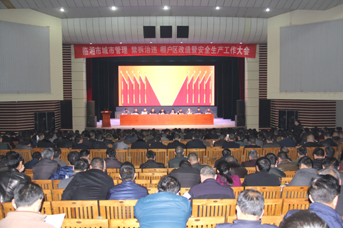 会议首先领读了《临湘市2017年城市综合管理与集中整治工作方案》、《临湘市中心城区增绿透绿工作实施方案》、《临湘市2017年棚户(旧城)区改造实施方案》以及《安全生产非法违建行为举报奖励办法》,并要求各相关部门单位、乡镇(办事处)要提高认识,明确工作目标,突出工作重点,强化工作措施,抓紧抓实城市管理、禁拆治违、棚改和安全生产工作。
