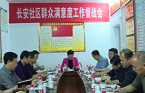 在群众满意度调查工作督战座谈会上,长安社区负责人汇报了前期工作。长安社区地处城西中路,是全市的政治、经济、文化中心,辖区内共有驻地单位38个,常住人口18000人。今年,该社区大力推进网格化管理,推选出11名网格员,访民情工作实现了规范化、常态化,为社区的和谐稳定打下坚实基础。