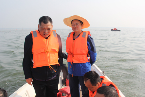 魏淑萍一行首先来到伍家叉,乘坐冲锋舟深入黄盖湖腹地,实地察看黄盖湖省级自然保护区内网箱和围栏拆除等情况。