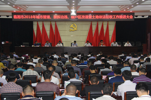 会议由市委副书记余岳雄主持。会上,市委常委、常务副市长凌晓明,市委常委、统战部长李其报分别宣读了《临湘市2018年城市综合管理工作方案》《市委、市政府关于进一步加强禁违拆违治违工作的意见》。市政府副市长吕乐作城市管理、禁拆治违、棚户区改造暨土地依法征收工作主题报告。