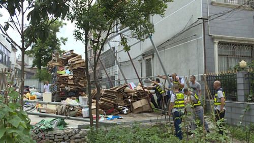 5月25日下午,五里牌街道办事处组织力量,依法对该街道金河社区一处违法搭建铁棚进行强制拆除。