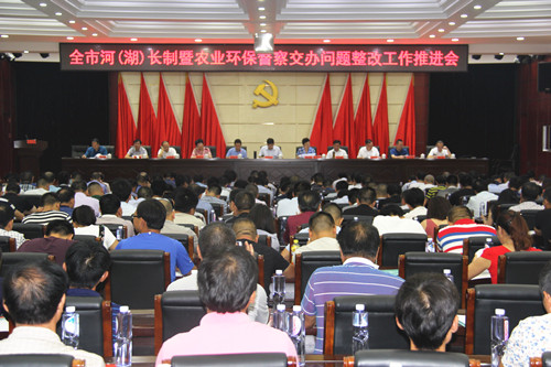 8月3日上午,全市河(湖)长制暨农业环保督察交办问题整改工作推进会召开,对全市河(湖)长制工作及省环保督察组反馈的农业环境突出问题整改工作,进行再调度、再推进、再落实。市领导李美云、魏淑萍、余岳雄、魏新咏、廖祯祥、凌晓明、李其报、易兴建、李孟阳、叶罡、张国辉等出席,各镇(街道)、市直部门单位负责人参加会议。