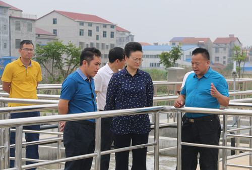 魏淑萍一行先后来到长江大堤鸭栏电排、新洲脑电排、谷花电排、烟波尾排水闸、铁山咀电排等排渍口,江南镇污水处理厂,以及黄盖湖大堤等地,实地查看排渍口整治、污水处理厂试运行与黄盖湖大堤沿线矮围拆除等情况。