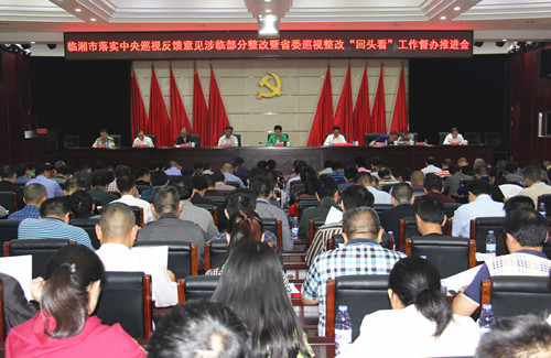 会议由市委副书记余岳雄主持。会议传达学习了《关于对省委第八巡视组巡视岳阳反馈意见整改情况进行“回头看”的通知》《关于对省委巡视第十组巡视临湘反馈意见整改情况进行“回头看”的通知》和《落实中央第八巡视组<关于巡视湖南省的反馈意见>涉临部分的整改方案》。相关单位代表进行了表态发言。