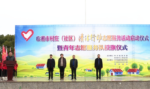 启动仪式上,市委宣传部相关负责人宣读了《临湘市村庄(社区)清洁行动倡议书》,志愿者代表带领参加仪式的志愿者们共同宣誓,致力推进全市人居环境整治。仪式还为青年志愿服务队分别授旗。