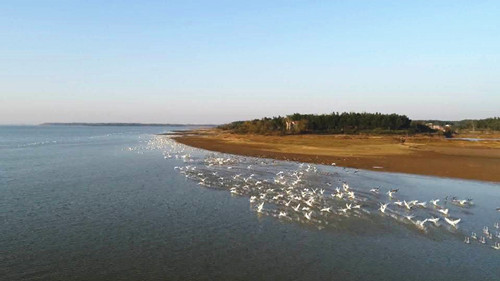 如今黄盖湖624种植物遍布湖汊丘岗,108种鱼类畅游深湖浅湾。生物多样性的湿地吸引了超5万只越冬候鸟展翅前来,跃居成湖南省第二大越冬候鸟栖息地。