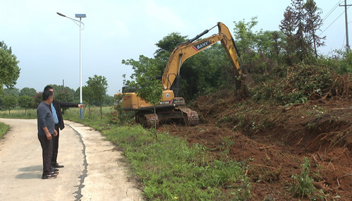 在乘岭社区陈湖组水果种植基地项目建设现场,开足马力的挖掘机正挥舞着“臂膀”平整土地,工人们各司其职,密切配合,全力以赴加快项目建设进度,现场一派繁忙景象。