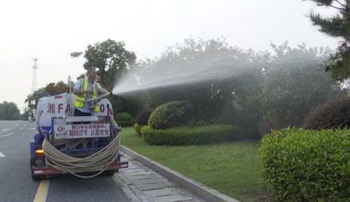 在107国道上,园林工人正操作洒水车,按照细浇慢灌、浇足浇透的原则,对道路两旁的桂花树、茶花等苗木,实施立体覆盖浇水保绿。针对各路段树种的习性、长势、旱情等情况,工人师傅们会适时调整浇水次数和水量,并避开高温时段,尽量选择夜间浇水,以减少水分蒸发,提高抗旱效果。