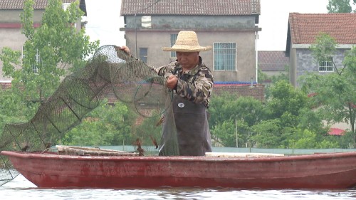 4月29日上午,在鸭栏村稻稻虾种养基地,工作人员正在熟练地收笼取虾,随着地笼的轻轻抖动,一只只肥美的小龙虾便滚落到筐中。