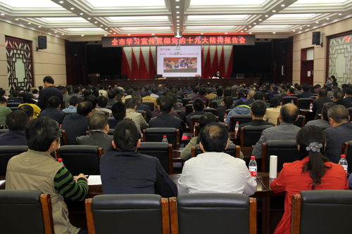 10月25日上午,我市召开学习宣传贯彻党的十九大精神报告会,传达学习习近平同志在党的十九大会议上的重要讲话精神。李美云、魏淑萍、余岳雄、魏新咏、廖祯祥等市委学习中心组全体成员,各镇(街道)党(工)委书记、镇长(主任)、宣传委员,市直各单位党政主要负责人和办公室主任等参加学习。