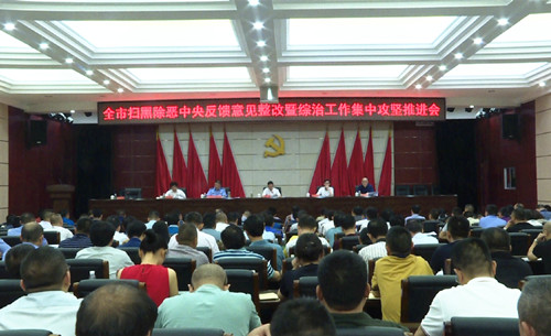 6月14日上午,全市扫黑除恶中央反馈意见整改暨综治工作集中攻坚推进会召开。市委书记谢胜在会上强调:要切实增强政治自觉、思想自觉和行动自觉,以除恶务尽的坚决态度、真抓实改的坚定行动,坚决打赢扫黑除恶专项斗争这场硬仗,为经济社会发展和群众生产生活营造安全、和谐的环境。市领导吕乐、邓可杰、张猛、吴春生等出席。
