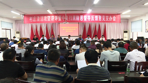 会议首先通报了该镇前段时间“三清理”“四拆除”集中攻坚回头看验收情况,后进单位作了表态发言。会议还传达了全市扫黑除恶中央反馈意见整改暨综治工作集中攻坚推进会精神,安排部署了扫黑除恶、平安创建等工作。