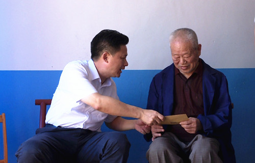 在贫困老党员陈国华、彭重阳等人家中,廖星辉先后与他们促膝交谈,详细了解他们的身体状况和生活情况,并为他们送上慰问金。