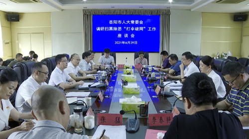 6月29日下午,岳阳市人大常委会副主任黄俊钧一行来我市调研扫黑除恶“打伞破网”工作。我市领导谢胜、李其报、叶罡、彭海云、陈长英、邓可杰等和相关部门单位负责人参加座谈会。