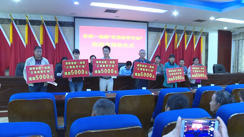 9月26日下午,湖南省统一战线“泛海助学行动”临湘市捐助仪式在市教体局举行。副市长刘如乐出席活动,市委统战部、市教体局、市扶贫办等相关单位负责人以及受捐赠的学生和家长代表参加活动。