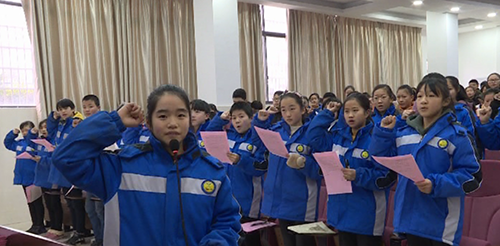 在活动现场,学生们诵读“不见垃圾桶,垃圾不松手”、“我是环保小卫士,果皮纸袋不乱丢”等宣传教育口号,并进行了宣誓。在集体签名后,同学们还将倡议书带到家中,开展“小手拉大手”一起捡拾家周边的轻质垃圾。