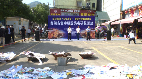 6月24日,我市开展集中销毁“码书、码报”活动。市领导吕乐、邓可杰、熊丽等出席。