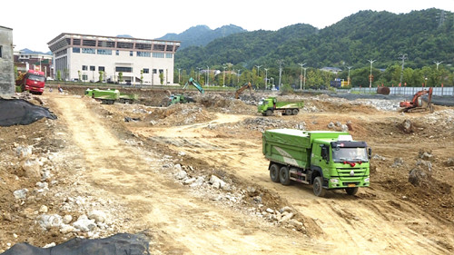 在城中南路,正在动工建设的某楼盘项目工程较大。烈日下,尽管工地施工一片火热,但置身其中,却并未明显感受到“尘土漫天”的场景。记者在现场看到,除了对工地内扬尘采取了措施,新型渣土车的“上岗”也功不可没。