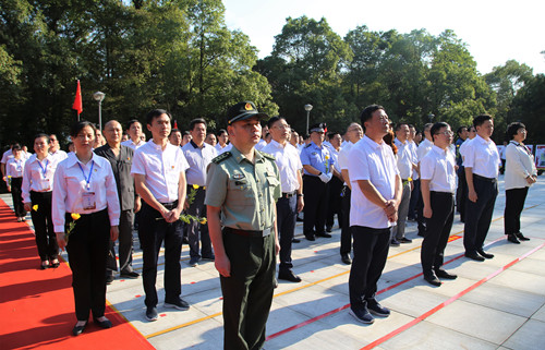 市委书记谢胜,市委副书记、市长廖星辉,市委副书记余岳雄,市人大常委会主任魏新咏,市政协主席廖祯祥,市委常委、市人武部部长郑斌等市领导,与各镇(街道)党(工委)书记,市直单位主要负责人,驻临人武部、武警部队官兵及消防员、公安干警代表、烈属代表、优抚对象代表、师生代表,怀着无比崇敬的心情,在烈士广场祭奠英烈,缅怀他们的英雄事迹。
