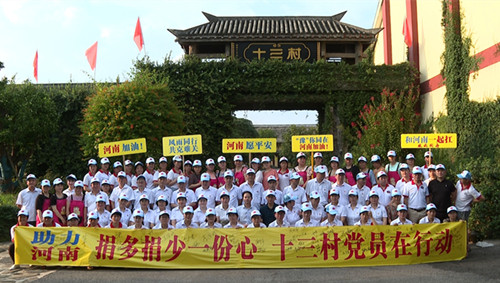 在十三村公司,该公司110多名党员、工人自发集结厂区广场,在“捐多捐少一份心,十三村党员在行动”的横幅上签名,并发出倡议,号召更多人为河南人民重建家园奉献爱心。烈日炎炎下,大家自发排起长队,慷慨解囊,将一笔笔饱含关爱之情的善款放进捐款箱,汇聚成涓涓暖流。