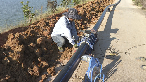 石岭村村民:“我们石岭村历史以来都是饮用地下水,特别是晴天就缺水,雨天就是浑水,红白喜事办理的时候无法供应,今天自来水正在施工中,到我家门口来了,预计不到两个月我们老百姓就能饮上干净的自来水,感到非常开心。”