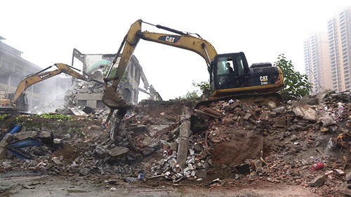 当天上午8时许,项目周边已经拉起了长长的警戒线,工作人员迅速清点转移了即将拆除建筑内的物品。上午9时许,3台挖掘机等施工机械开始对项目土地上原有三栋建筑物实施拆除作业。