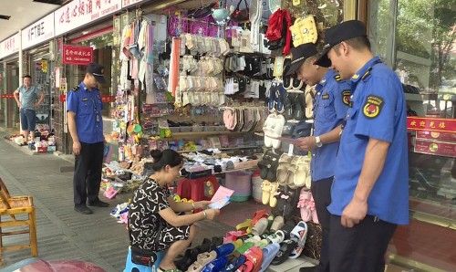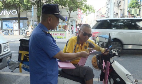 连日来,市城管局工作人员顶烈日战高温,在城区各路段和社区周边开展常态化巡查整治,纠正和劝导巡查过程发现的占道经营、人行道乱停乱放自行车、摩托车等行为,并向沿街商铺宣传“门前三包”制度。