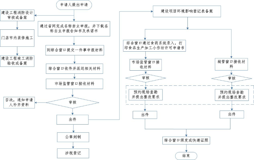 “我要开食品生产小作坊”一次办流程图(时限:10个工作日)
