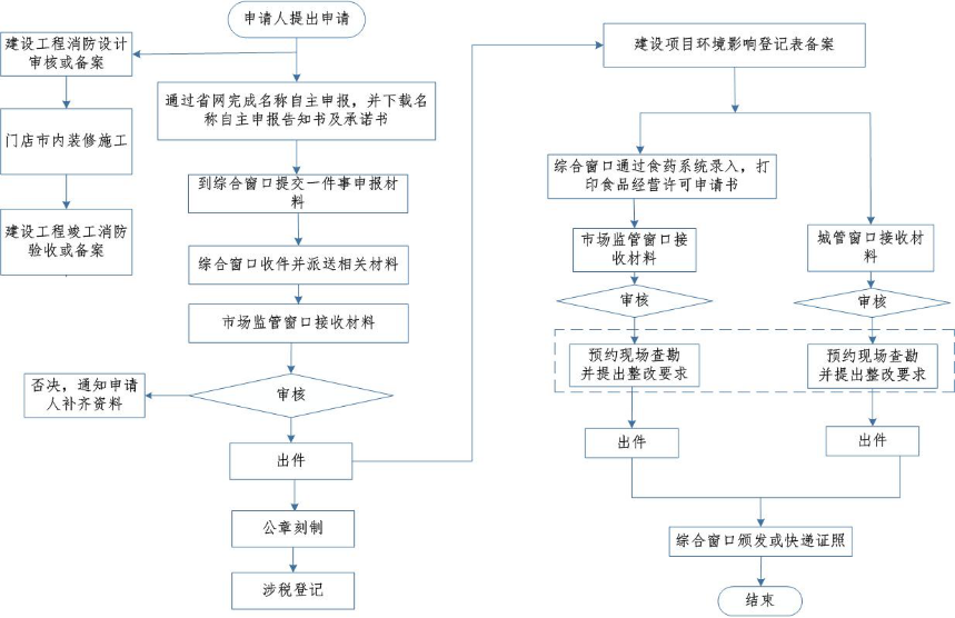 营业执照2个工作日,食品经营许可证10个工作日,公共场所卫生许可证5个工作日,户外广告许可证5个工作日,建设工程消防设计审核及备案7个工作日,公众聚集场所投入使用、营业前消防安全检查合格证8个工作日,税务事项办理可即时办结。不符合相关情形,或涉及增值税专用发票(增值税税控系统)最高开票限额审批且最高开票限额十万元以上的最多需要20个工作日。