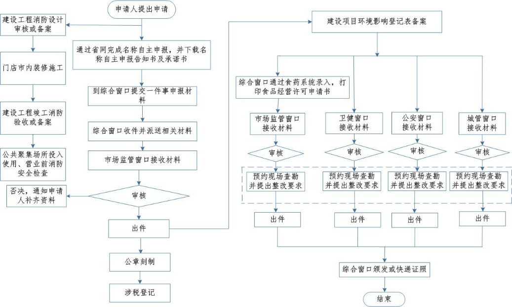 市场监管、公安、生态环境、城管、住建、卫健、税务、消防等部门。