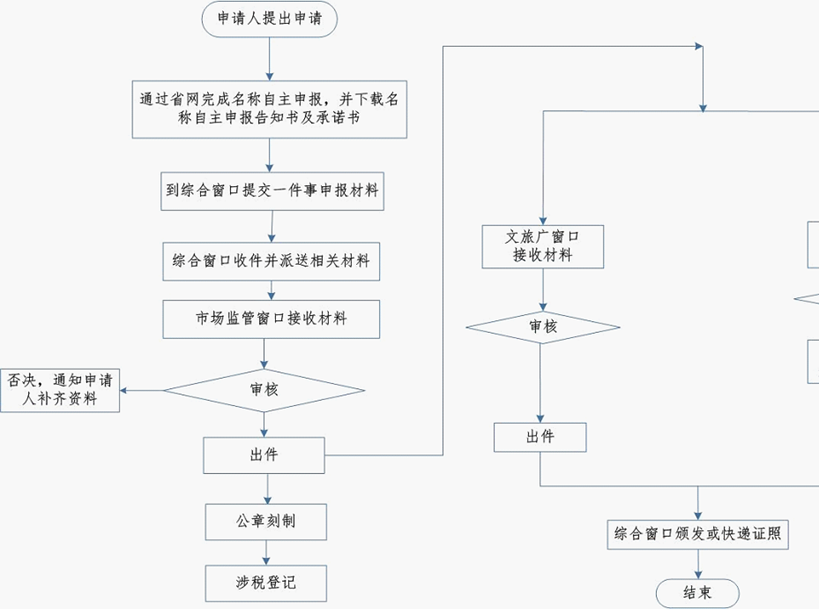 营业执照2个工作日,旅行社业务经营许可10个工作日内,户外广告许可证5个工作日,临时占用街道两侧和公共场地许可证5个工作日,税务事项办理可即时办结。不符合相关情形,或涉及增值税专用发票(增值税税控系统)最高开票限额审批且最高开票限额十万元以上的最多需要20个工作日。