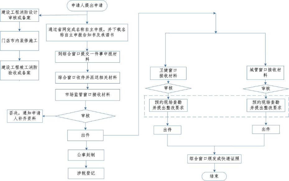 市场监管、卫健、城管、住建、消防、税务等部门。