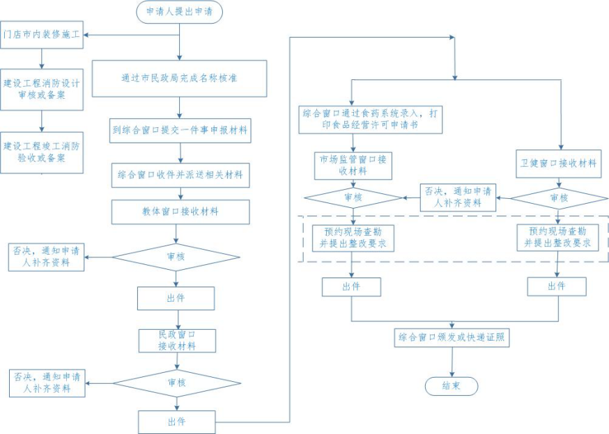 全流程承诺时限:50个工作日(不含材料补正、申请人装修、现场踏勘不通过提出整改等时间)。