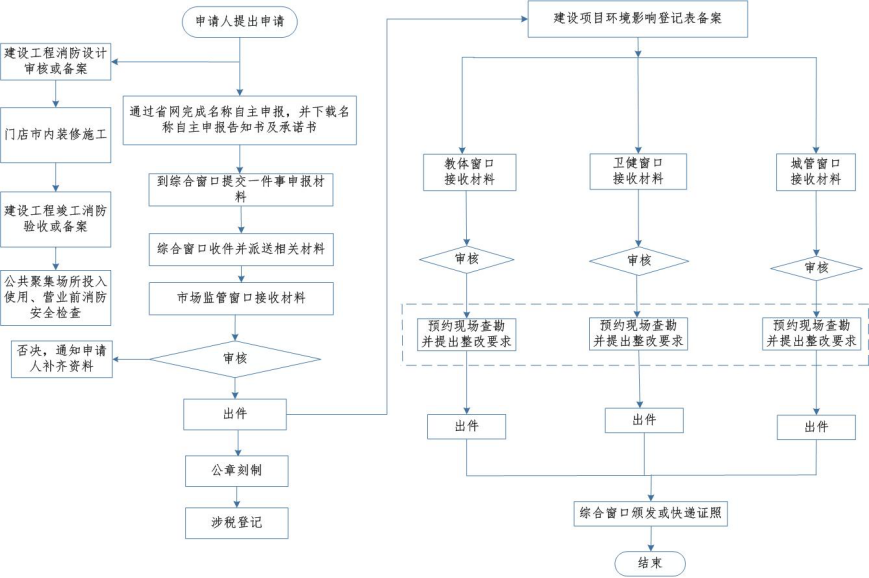 营业执照2个工作日,高危险性体育项目经营许可证10个工作日,公共场所卫生许可证7个工作日,户外广告许可证5个工作日,临时占用街道两侧和公共场地许可证5个工作日,建设工程消防设计审核或备案7个工作日,公众聚集场所投入使用、营业前消防安全检查合格证8个工作日,税务事项办理可即时办结。不符合相关情形,或涉及增值税专用发票(增值税税控系统)最高开票限额审批且最高开票限额十万元以上的最多需要20个工作日。