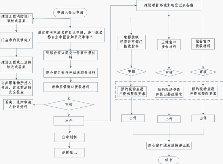 “我要开电影院”一次办流程图(时限:12个工作日)