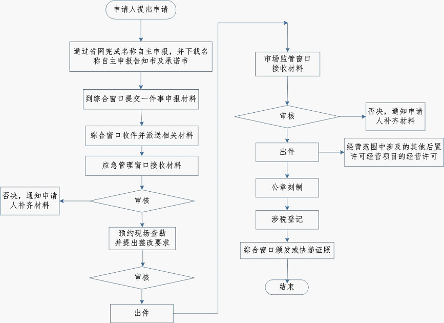 1、根据法律的规定,危险化学品经营许可属工商登记前置审批事项,申请人在办理企业名称预先登记后,向应急管理部门申请办理《危险化学品经营许可证》,待取得许可后再向企业登记等部门申请办理公司设立登记等事项。