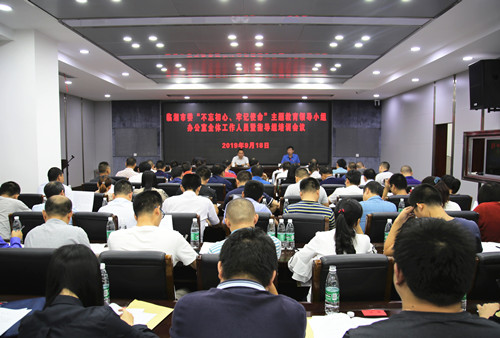 9月18日下午,我市召开“不忘初心、牢记使命”主题教育领导小组办公室全体工作人员暨指导组培训会。市委常委、组织部长易兴建出席会议。