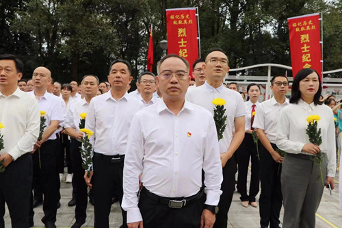 王文华、刘琦、李其报、彭海云、郑斌等为花篮整理缎带,并瞻仰烈士纪念碑。随后,参加公祭活动的其他市级领导和各界代表依次敬献鲜花,相继绕碑瞻仰,表达对先烈们的缅怀之情。