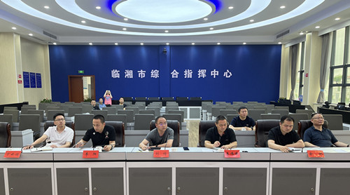 在市应急综合指挥中心,刘琦通过视频连线的方式,实时查看各镇(街道)水文水情监测预警情况,并向省、岳阳市防指汇报了我市本轮强降雨和应对措施等工作情况。