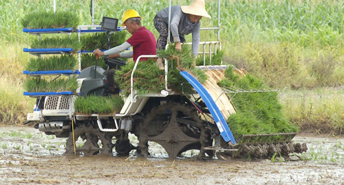 江南镇鸭栏村种粮大户肖清君:“三台插秧机同时作业,一天能插秧120亩以上,是人工抛秧、插秧的十几倍。这不仅省时省力,还降低了种植成本。我今年种植的2000亩晚稻将在一周内插完。”