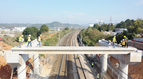 S206线季兰坡公跨铁桥主跨预制梁板吊装完工 确保春节前竣工通车
