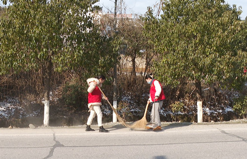 行动中,志愿者还与镇村干部对路面上的沙石、垃圾进行清理,既改善了行车视距,又营造了整洁、美观的路域环境。
