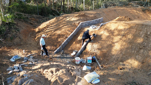 11月11日,在五里牌街道楠木村土墙冲水库除险加固施工现场,挖掘机正在有序进行挖土围堰、削土培坡工作,工人们则严格按照施工标准,进行着帷幕灌浆以及坝前基础拆建作业,施工现场一派忙碌景象。