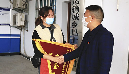 10月29日上午,白羊田镇八百村村民曾丽将一面印有“品德高尚,拾金不昧”的锦旗送到临湘龙鑫运输责任有限公司,对龙鑫运输公司工作人员拾金不昧的善行义举表示感谢。