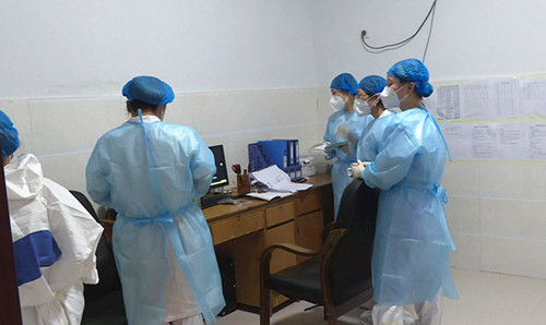 隔离点护士王燕说:我们每天分为两个班,白班和晚班,各为12个小时,我们每天的工作是对隔离人员进行早、中、晚三次健康状况巡查及早晚两次体温监测,并对隔离场所进行消毒管理,分为早晚两次。