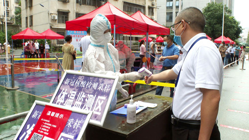 8月10日下午,市突发公共卫生事件应急指挥部组织开展新冠病毒全员核酸检测实战演练。岳阳市突发公共卫生事件应急指挥部派驻临湘疫情防控重点工作指导组组长周伟祥,我市副市长提名人选、市政府办党组书记、主任黎建平现场观摩。