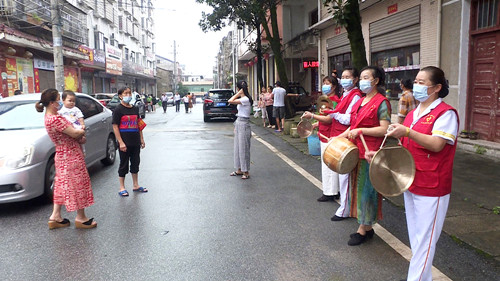 8月10日上午,羊楼司镇文化站四名志愿者正在排练自创的疫情防控三句半,加以锣鼓方式进行演唱,再通过微信短视频和走村入户流动宣传等形式,方便广大群众更好的记住疫情防控相关知识。