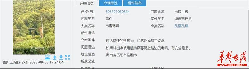 华声在线9月12日讯(通讯员 李苗)9月5日17时许,临湘市城管局城市管理综合服务平台,接收到一条热心群众通过临湘新城管微信公众号“随手拍”功能上传的案件信息,反映羊楼司镇如斯村出水坡组107国道旁一电杆及电线,被藤蔓植物生长缠绕,存在安全隐患。
