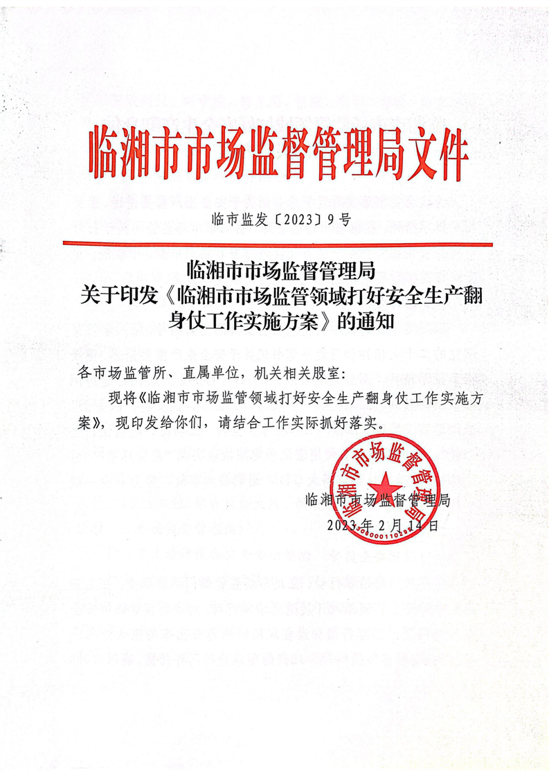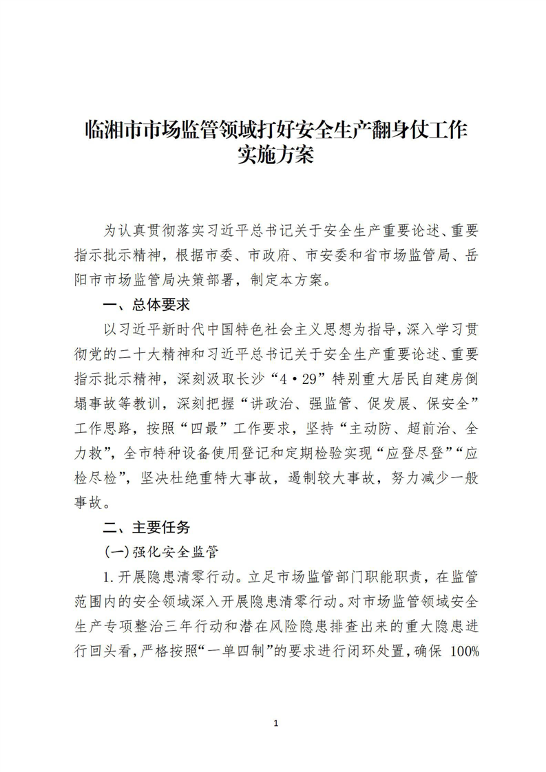 临湘市市场监管领域打好安全生产翻身仗工作实施方案
