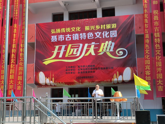 仪式上,聂市镇人民政府镇长李青致欢迎词,李镇长表示:聂市镇高度重视文化旅游行业的发展,坚持“以文塑旅、以旅彰文”发展方向,做细做优文旅产业,不断擦亮“千年茶镇”金字招牌。我们相信,聂市古镇特色文化园的建成将为聂市古镇注入了新的活力,也为广大游客提供了一个体验传统文化、享受休闲时光的绝佳去处。